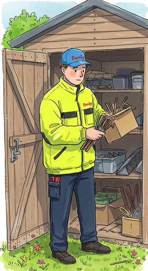 「この物置、子どもたちが小さい頃から何でも詰め込んでしまって、気づいたら開かずの間みたいになってしまって……。」と奥様が少し恥ずかしそうに話します。