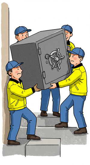 全員で息を合わせ、慎重に金庫を降ろしていく。