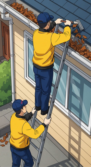 朝から澄んだ青空が広がる新宿区の住宅街。今日はご依頼者様の戸建て2階にある雨樋の掃除を行うことになった。