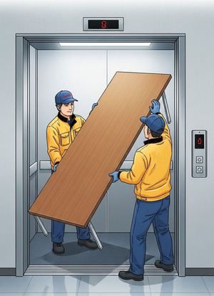 エレベーターがあるとはいえ、3階からの搬出となると運び方を工夫しなければならない。