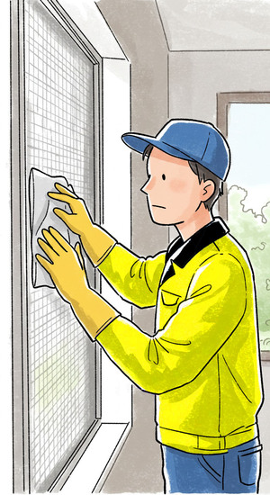 しばらく手入れをしていなかったらしく、網戸にはたくさんのホコリが溜まっている状態だった。