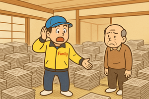 その表情から、新聞を溜めてしまったご苦労や不安がにじみ出ているようでした。